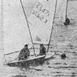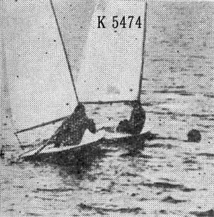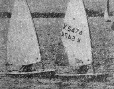 Рис. 117 б. "Лазер" без номера огибает знак первым, имея шансы сохранить это положение. |