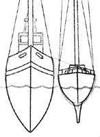 Для обеспечения плавучести поврежденной яхты используют надувной тузик или спасательный плот. Необходимо проследить, чтобы плот не касался какого-либо острого предмета, который может его повредить. В порту яхту можно привязать к большему по размеру судну. Для этого под днище яхты в носу и корме заводят два троса, которые подтягивают немного к центру и надежно крепят к судну. |