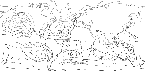 водой. На рис. 64 изображена характерная синоптическая карта при погоде, обусловленной