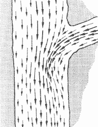 Эту элементарную особенность течений очень легко продемонстрировать, разбросав несколько палок на различных расстояниях от середины потока и сравнив их перемещение.