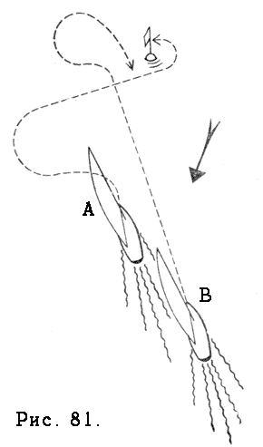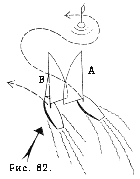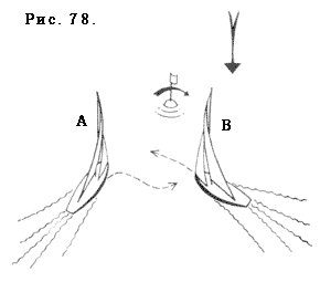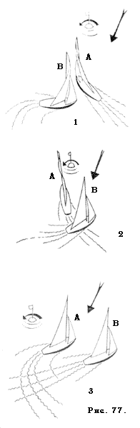 на рис. 89, яхте А достаточно привестись, чтобы догнать яхту В и прикрыть ей ветер.