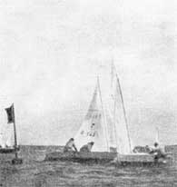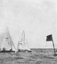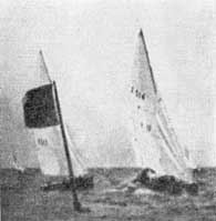 …№ 543 находится в безнадежной подветренной позиции относительно № 514, что позволяет третьему швертботу подойти ближе . . . |