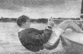 Это самое лучшее, что может сделать матрос на слишком короткой трапеции, чтобы откренить швертбот. Швертбот имеет хороший баланс и не лежит на руле. Если матрос легкий, то рулевой может выйти на трапецию сам. Но в этом случае надо иметь дополнительный крючок на пять дюймов выше обычного, чтобы рулевой мог достаточно низко опуститься, выйдя за борт. Преимущество этого метода заключается в том, что от этого натягивается штаг. Однако при глиссировании на трапецию должен выходить матрос, так как очень трудно точно рулить с трапеции, особенно в неустойчивый ветер и на большой волне. Техника управления швертботом с рулевым на трапеции на лавировке чрезвычайно удобна и имеет еще одно преимущество: рулевой хорошо видит не только паруса, но и положение на дистанции, что помогает ему легче решать тактические задачи.