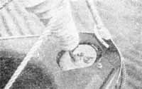 Легко открывать отверстия в транце с помощью этого рычага. Обратите также внимание на способ регулировки лямок для ног.